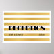 Fondo de rayas doradas y blancas con RECEPCIÓN de tipo Art Deco. Personalizar con el nombre y la fecha de la pareja.