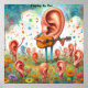 ¡Una sinfonía surrealista de sonido y vista! Este caprichoso dibujo animado presenta una oreja gigante rasgueando una guitarra mientras una multitud de orejas diminutas escucha con asombro. Ya seas un amante de la música, un entusiasta de los juegos de palabras o un fanático del humor extravagante, este diseño acierta en todas las notas correctas. Perfecto para regalos, arte de pared y merchandising que marcha al ritmo de su propio tambor... o oreja.