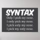 Un gracioso ilustracion de tipografía que tiene la sintaxis de la palabra y luego algunas oraciones explicando lo importante que es la colocación de palabras cuando escribes. El diseño gracioso es sobre recoger tu nariz. La palabra sólo se mueve a diferentes posiciones en la frase para darle significados diferentes. Sólo me cojo la nariz. Este es un diseño que sería adecuado para cualquiera que aprenda o enseñe el idioma inglés.