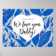 Decoren su espacio con nuestro "Siempre recuerden: te queremos, papá". Poster del Día del Padre. Con un impresionante patrón de plumas azules, este poster sirve como un hermoso recordatorio del amor y aprecio que tienes por tu padre. Colóquelo en la pared para crear un punto focal con estilo en cualquier habitación. La impresión de alta calidad y los colores vivos convierten a este poster en un lugar destacado. Ya sea como un regalo o como una adición especial a tu propio espacio, este Poster del Día del Padre es una manera significativa de honrar y celebrar a tu padre. Muéstrale lo mucho que significa para ti con este conmovedor tributo que iluminará cualquier pared y calentará su corazón. Personaliza como quieras.