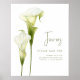 Este recuerdo para cartel de boda presenta un estilo sofisticado y minimalista. Lirios calla delicados en tonos verdes suaves se representan sobre un fondo claro, creando una atmósfera de sofisticación y tranquilidad. El diseño es moderno, aireado y perfecto para una boda elegante y romántica.