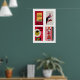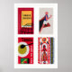 Póster Red Czechoslovak Matchbox Labels Grid Print