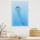 Una pintura acuarela de una medusa, con una parte superior colorida, en el océano grande, abierto y azul. Derechos reservados ©2017 Kimberly J Tilley.