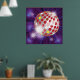 Una bola de disco roja brillante y brillante. Este diseño parece realmente efectivo en este Poster