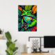 The contrast between deep jungle tones and the frog’s vibrant markings makes this design especially striking as a poster or framed art print. It works beautifully in living rooms, creative studios, classrooms, nurseries, or any space that benefits from a lively splash of color. The vertical composition makes it ideal for narrow wall spaces or gallery-style arrangements.