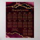 Póster Red Gold Agate Wedding Seating Chart 12 Table