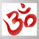 Póster Red Hindu Symbol Om Aum Devanagari Calligraphy