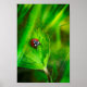 Roter Marienkäfer auf einem grünen Blatt en der freien Natur zarter Textur