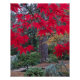 Glossy style poster print that features a colorful, photographic image of fiery, red Japanese maple leaves in a Japanese garden during the autumn season. Customize your poster size as desired. Frame not included. Photo: Point Defiance Park Japanese Garden
