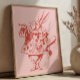 Póster Red& Pink Storybook Vintage Rabbit Illustration