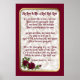 Vintage verse by Robert Burns on rich satin look background and embellished with deep red rose spray with burgundy red border