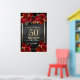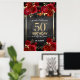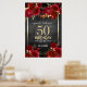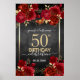 Elegant Faux gold confetti highlights on the top and bottom border. Bright deep red roses with gold floral accents. All text is adjustable and easy to change for your own party needs. Great elegant 50th birthday template design.
