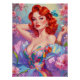 Póster Redhead Pin-Up con flores rosadas de huevo de Pasc