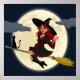 REDHEADED HALLOWEB WITCH VOLANDO EN BROOMSTICK CON CAT Y LUNA COMPLETA