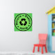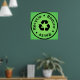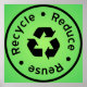 Reducir, reutilizar, reciclar poster con texto negro y símbolo de reciclaje en un fondo verde desvanecido.