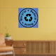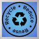 Reducir, reutilizar, reciclar el poster - la inscripción negra y el símbolo de reciclaje en un fondo azul descolorido.