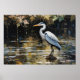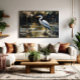 "Reflexión Silenciosa" combina la naturaleza y el arte digital en una escena etérea. Una majestuosa garza permanece quieta en un lago pixelado, rodeada de hojas doradas y ondas geométricas. Un toque contemporáneo para espacios que invitan a la serenidad y la contemplación.
