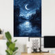 Póster Reflexión sobre el lago iluminado por luna en azul