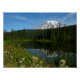 Póster Reflexión sobre el lago Mount Rainier con flores s