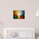 Este arte de pared abstracto combina colores primarios y secundarios con negrita y textura, evocando la esencia de las reflexiones. En el diseño asimétrico, los amarillos cálidos, los naranjas y los azules y verdes frescos se armonizan a lo largo de una línea de horizonte. Los colores frescos y cálidos irradian por encima y por debajo del horizonte para crear una viñeta y mantener al espectador dentro de su reflexión implícita. El blanco irradia desde la línea del horizonte, arrastrando al espectador hacia la composición. Sus tonos vibrantes y sus formas dinámicas crean un equilibrio de tensión y unidad, lo que provoca imaginación.