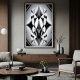 Una obra de arte abstracta que mezcla misterio y sofisticación. Las formas simétricas en blanco y negro crean movimiento y profundidad, evocando pétalos o máscaras futuristas. Perfecto para espacios modernos que valoran el arte atrevido, elegante y llamativo.