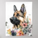 Regal German Shepard: Una fusión del poder es una obra de arte única y hermosa que muestra la gracia y el poder de la adorada raza de perro. Este impresionante cuadro cuenta con un Shepard alemán en movimiento, rodeado de flores acuáticas intrínsecamente mezcladas. Los colores audaces y contrastantes de la pintura crean una sorprendente composición, mostrando la creatividad y habilidad del artista. Los pétalos delicados de las flores se mezclan perfectamente con los lavados de acuarela, añadiendo una calidad suave y femenina a la pieza.