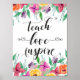 Póster Regalo del profesor Enseñar Amor Inspira Cita Flor