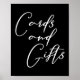 Moda sencilla y elegante, nuestra minimalista colección de bodas de invierno presenta una tipografía cursiva elegante para su evento moderno. Impresione a sus invitados con un poster boda formal con un sencillo guión en blanco que lea Tarjetas y Regalos con un atrevido fondo negro.
