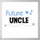 Futuras cajas de sake Uncle keepsake, azulejos, ornamentos, cuadernos, tazas, imanes, tarjetas, botones, cascos, cadenas de claves, y otras prendas de vestir y artículos de regalo de futuros tíos con un texto azul y negro y diseño de estrellas.