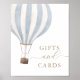 Invitar a amigos y familiares a dejar sus tarjetas y regalos en un lugar designado con este cartel, con un globo azul de aire caliente y una elegante tipografía de oro.