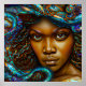 Póster Reina azul arcoiris lindo pelo negro melanina afri
