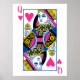 Este divertido diseño presenta a la Reina de los Corazones desde una baraja de cartas.