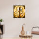"Una fascinante escena de títeres en la sombra de Wayang Kulit que presenta a una diosa dramática y hermosa, intrincada diseñada con motivos tradicionales javaneses y balineses. Su elegante silueta está adornada con delicadas tallaciones y elaborados motivos dorados, que reflejan el arte del juego de sombra clásico. La diosa desprende una gracia divina, con unas prendas de vestir y unas joyas ornamentadas que brillan en tonos de amarillo claro y oro líquido brillante. El fondo brilla con una suave radiancia dorada, realzando el ambiente místico de la escena. Toda la composición está enmarcada por una elegante y ornamental frontera con finos detalles giratorios, que recuerdan a antiguas tallaciones de templos. Los sutiles efectos de iluminación añaden profundidad y contraste, enfatizando la intrincada esencia artesanal y narrativa del arte Wayang Kulit".
