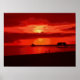 embarcadero pesquero contra un cielo rojo intenso con dos personas caminando en la playa. tomado en Nápoles, florida. tarjeta y sellos para coincidir.