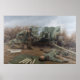 Relámpago en Bourheim por Larry Selman Print. Operación Reina, Bourheim, Alemania, 26 de noviembre de 1944. El sargento técnico Joseph A. Farinholt, conocido como "Lightning Joe" a sus amigos, ya había ganado tres estrellas de plata en los cinco meses y medio desde que su unidad aterrizó en la playa de Omaha el 7 de junio de 1944. Un Guardaespaldas de Baltimore, Maryland, Farinholt, era jefe de sección en funciones del pelotón antitanque de la Sede y de la Compañía de la Sede, 3ᵉʳ Battalion, 175th Infantry, 29th Division, cuando ganó su cuarta y última Estrella de Plata a finales de noviembre de 1944. Ningún hombre alistado en el ejército ganó cuatro Estrellas Plateadas durante toda la guerra, mucho menos durante un periodo tan corto de tiempo. El 26 de noviembre de 1944, la 175ª Infantería se esparció por el perímetro exterior de la ciudad de Bourheim, que había capturado tres días antes. Por sexta vez en esos tres días, una columna blindada alemana intentó recuperar la ciudad, clave para su defensa de la estratégica ciudad de Julich en el río Roer. El ataque enemigo se abrió con una intensa descarga de artillería que el Informe Después de la Acción de la División 29 cita como "...lo peor que sufrió la división durante la guerra". Luego la infantería alemana y sus tanques de apoyo avanzaron. Los hombres en las áreas periféricas regresaron a la ciudad y parecía que el enemigo finalmente podría atravesar. Farinholt rápidamente entró en acción. Uno de sus tres equipos de 57 mm con armas antitanque, después de disparar varias balas contra el enemigo, se convirtió en víctima cuando un proyectil alemán golpeó un árbol cerca de su posición. Sabiendo que la pistola de 57 mm no tenía el poder de penetración para perforar la armadura de un tigre, Farinholt cargó, apuntó y disparó contra la banda de rodadura del tanque Tiger principal, desactivándolo y deteniendo el avance de la columna. Sin embargo, el tanque devolvió el fuego con ametralladoras perforadoras, hiriendo a Farinholt en más de 20 lugares y destrozando los huesos de su pierna derecha por debajo de la rodilla. A pesar de sus heridas, se las arregló para arrastrarse hasta su jeep y conducir hasta el cuartel general del batallón para alertarles de la fuerza y dirección del ataque alemán. Debilitado por sus heridas e incapaz de controlar tanto el embrague como el pedal del gas, Farinholt chocó su jeep hacia el edificio de la sede, pero se negó a los primeros auxilios hasta que entregó su informe. Debido a sus acciones y a las de su pelotón, el avance alemán se estancó durante casi una hora y luego se desvió a otro sector, ganando tiempo para que la 29ª División moviera tropas y convocara apoyo aéreo para derrotar con éxito el ataque. Los alemanes nunca recapturaron Bourheim. Las heridas de Farinholt fueron tan graves que regresó a casa y pasó casi dos años en el hospital. Aunque vivió casi 60 años más, nunca se recuperó completamente de sus heridas. Se le representa aquí mientras luchaba contra la guerra, con el crecimiento de la barba durante varios días, tocando su arma preferida, la "pistola de grasa" M-3 en la espalda y usando las botas que "liberó" de un soldado alemán muerto en Normandía porque estaban mucho más cómodos que el equipo de emisión de los Estados Unidos. La notable valentía de Farinholt fue emblemática del coraje mostrado por más de 300.000 Guardias Nacionales que fueron llamados a trabajar activamente en tiempos de paz en 1940 y 1941, más del doble del tamaño del ejército antes de que Estados Unidos entrara en la Segunda Guerra Mundial. Mientras que unos 75.000 hombres de la Guardia contratados pasaron a ser oficiales durante la guerra, los que -como Farinholt- permanecieron en las filas inscritas desempeñaron un papel igualmente valioso al proporcionar el sólido núcleo de liderazgo experimentado de los suboficiales, que cada unidad debe tener éxito en el combate. Todas las impresiones se presentan y muestran con el mayor tamaño/resolución disponible. El sistema le impedirá elegir un tamaño mayor que el que puede tener la imagen. Abarque los tamaños disponibles, desde los más pequeños hasta los más grandes, y elija el tamaño que desee.