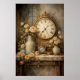 Póster Reloj Antiguo y Rosas