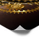 Antiguo, fantásticos relojes con engranajes de oro y latón sobre un fondo marrón y oxidado. Estilo Steampunk.