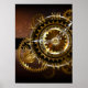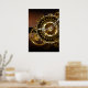 Antiguo, fantásticos relojes con engranajes de oro y latón sobre un fondo marrón y oxidado. Estilo Steampunk.