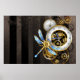Póster Reloj de vapor con libélula mecánica