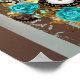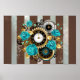 Póster Reloj de vapor y Rosas turquesa a rayas