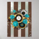 Póster Reloj de vapor y Rosas turquesa a rayas