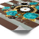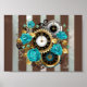 Póster Reloj de vapor y Rosas turquesa a rayas