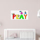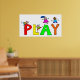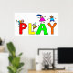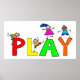 Ilustracion personalizado de niños y chicas trepando sobre letras gigantes del alfabeto que deletrea la palabra JUEGO. Imagen disponible en varios regalos y productos. Posters. Impresiones.