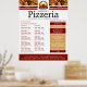 Póster de Menú de Restaurante de Pizza, Pizzería de The Business Card Store.