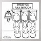 Un cuarto de baño sin paredes entre tres aseos, "Barrier Free Public Restroom".