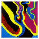 ¡Celebren la narración indígena a través de este arte aborigen imaginativo y estilizado! Sus colores vivos de violetas, amarillas y azules chisporan imágenes de formas animales.