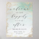 Ombre Verde azulado Aqua Frosted Relieve metalizado Boda acuarela Diseño con lavado de acuarela pintado a mano que desvanece Mint Green a textura de fondo blanco. Una Moda y un estilo moderno para un boda primavera o verano, con una suave paleta de colores pastel: detalles y venas de Relieve metalizado Verde azulado, Aqua, Mint y dorado, y un moderno cepillo de moda Letras manuscritas Fuente - Recepción de boda personalizada Bienvenido a nuestro Feliz Año Después del Rótulo! ~ Revisa mi tienda para ver toda la suite boda para este diseño!