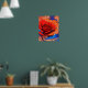El poster artístico y floral moderno presenta un rosa digital abstracto digital de mármol rojo y naranja sobre fondo azul.