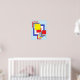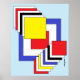 Esta obra de arte geométrica abstracta de Richard H. Fay presenta un conjunto de cuadrados en los colores primarios del rojo, el azul y el amarillo, así como el negro y el blanco.