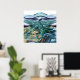 Póster Resumen de tinta dorada azul